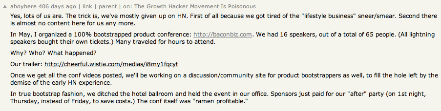 That was before I started working on HN, so I don't have any inside details. But I'll give you my take on what I think happened, based on the time I did spend working with pg on the site. I need a few minutes though--there's another comment pending on my stack. Will come back and edit this.